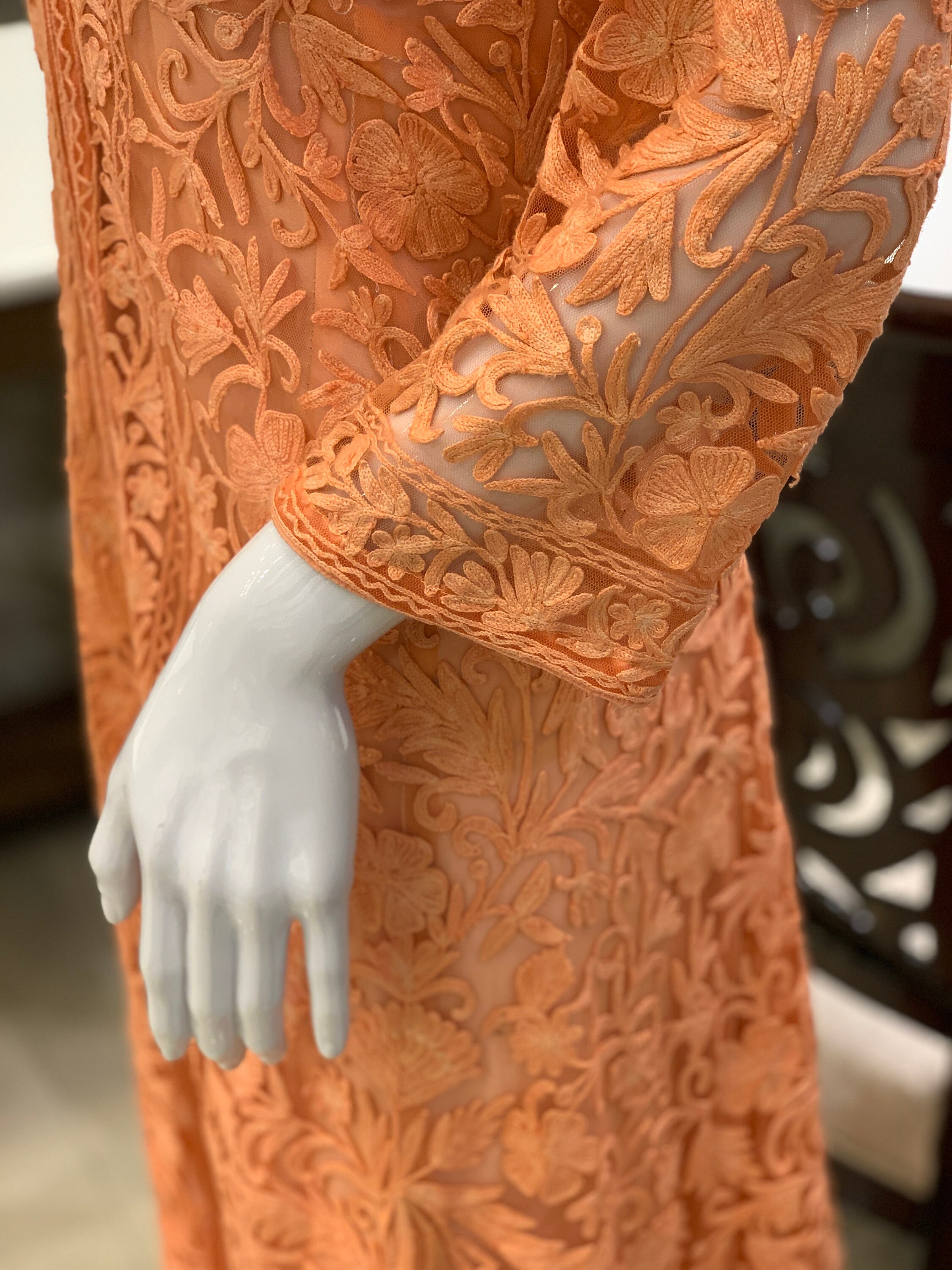 Sequence Collar Kleid Mit Selbst Floralen Stickerei Netzjacke Etsy De